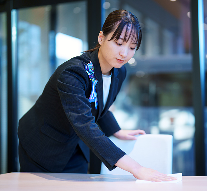 私の1日は、出勤後にショールームを清掃することから始まります。それからレジを開けるなどの開店準備を済ませ、お店のオープン後はご来店されたお客様を笑顔でお出迎えし、点検・車検などの受け付けを行っていきます。
